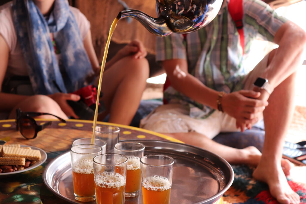 After making it to the camp, we’ll climb the towering dunes for a great view. After that, we’ll have a tasty dinner, and spend the overnight in a Berber-style tent, surrounded by the quiet desert.